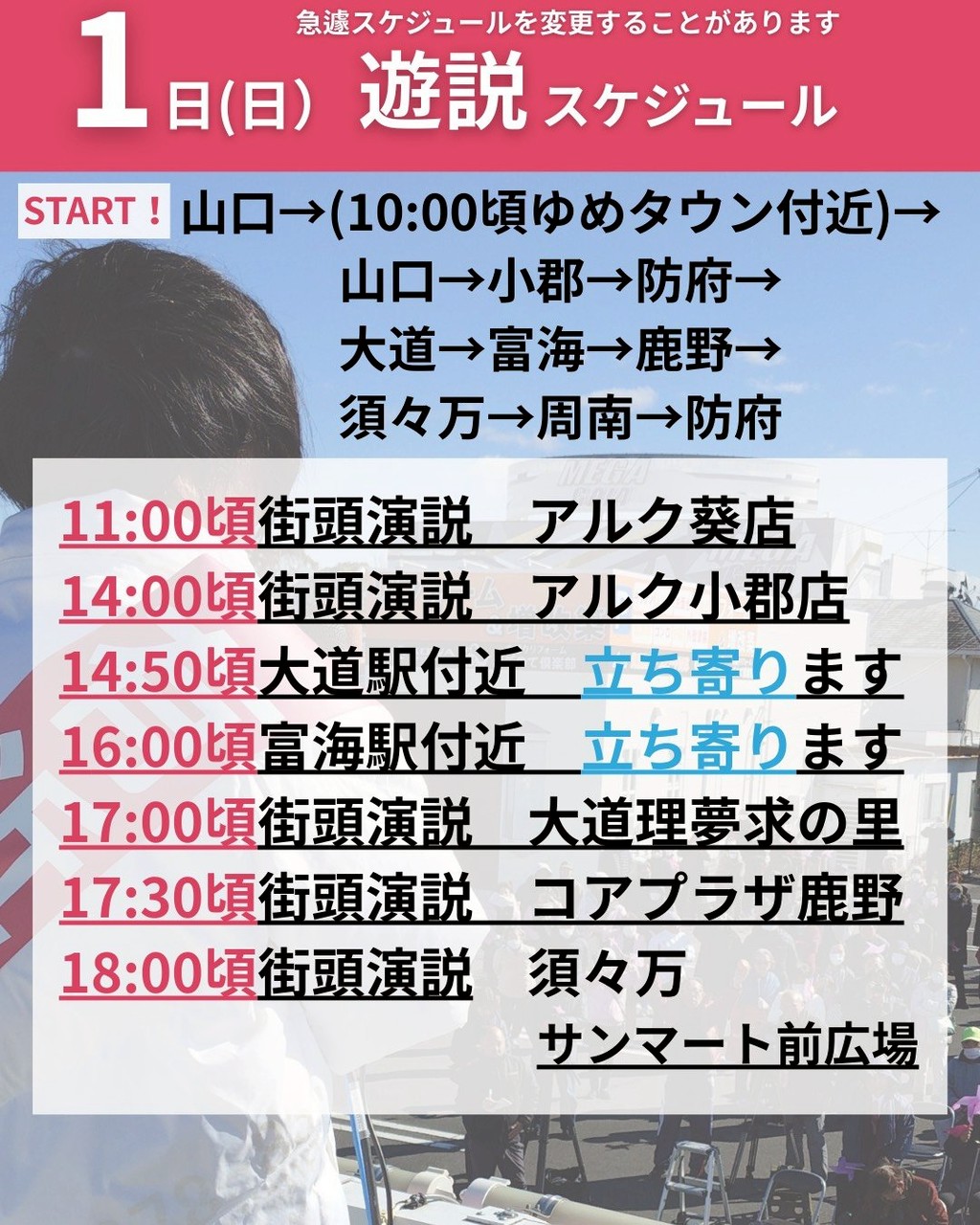 2月1日 有近まちこ遊説スケジュール